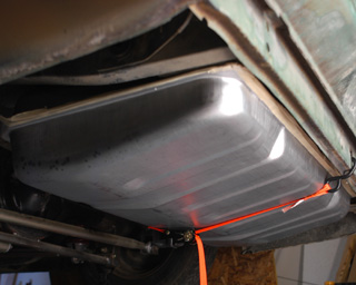 (i didnt want a fuel cell taking up trunk space )..so i thought about what cars had this same style and figured out 67-8 camaro tanks have the same gas filler style...i found the measurements ..based on that i ordered one and also purchased new camaro straps...
