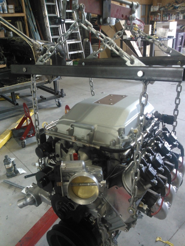 Wayne, I've got a high dollar lift plate that I used for my small block chevy engines. It has pulled and installed quite a few engines through the years, and works well, but for the LS stuff, I use a seat belt. I have a 5 or 6 foot long piece of seat belt that I cut out of a junk car in a junk yard. Install a 2 inch bolt in the front corner of either head, and do the same on the rear of the opposite head. Tie the seat belt around the bolts with a couple of good knots, and ter-der, your on the way. Works better than a chain, and is unbreakable for what we are doing with it. I have pulled and installed 3 LS engines with the same seat belt, and it's unhurt. Sounds funny, but it works really well. I used the rear of my passenger head, because my drivers side head is like 1/4" off the firewall, for what that's worth. I pull engines with tranny installed, so it will hold the weight, no problemo. Best of all, the junk yards will give you all the seat belts you want, just use a sharp knife, and cut them as long as they will pull out.