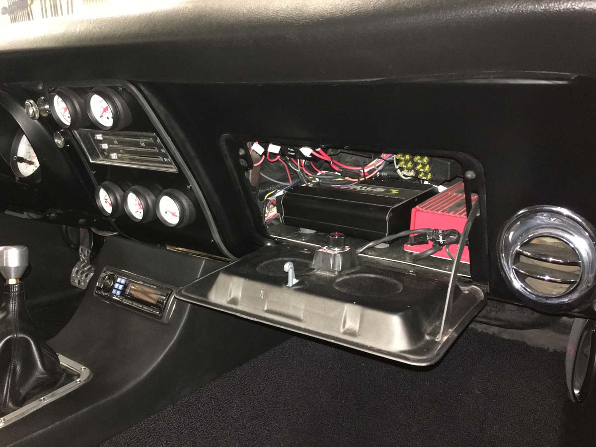 The stock fuse box was used with custom wiring from the box in both directions throughout the car.