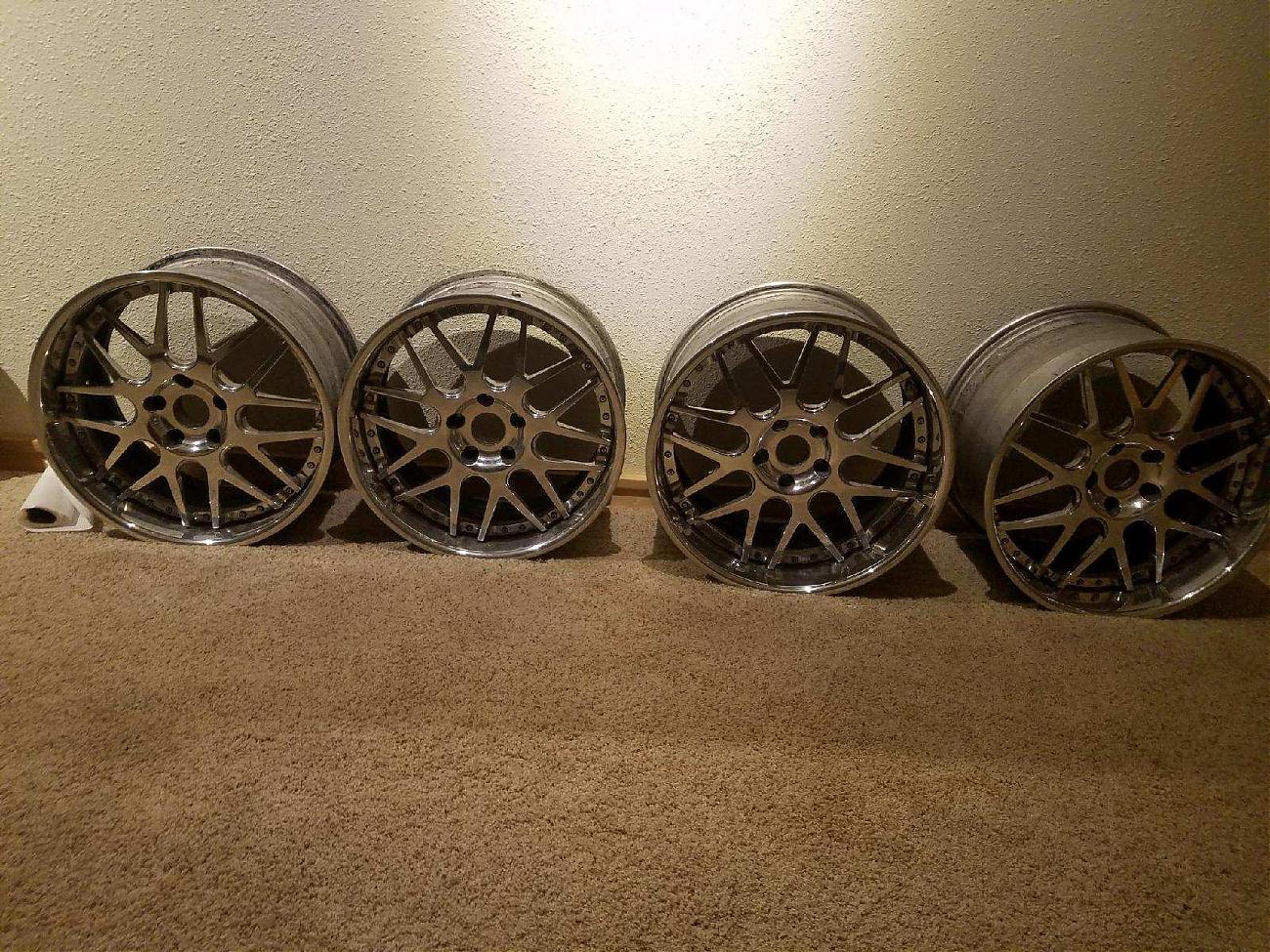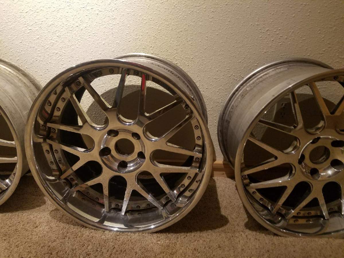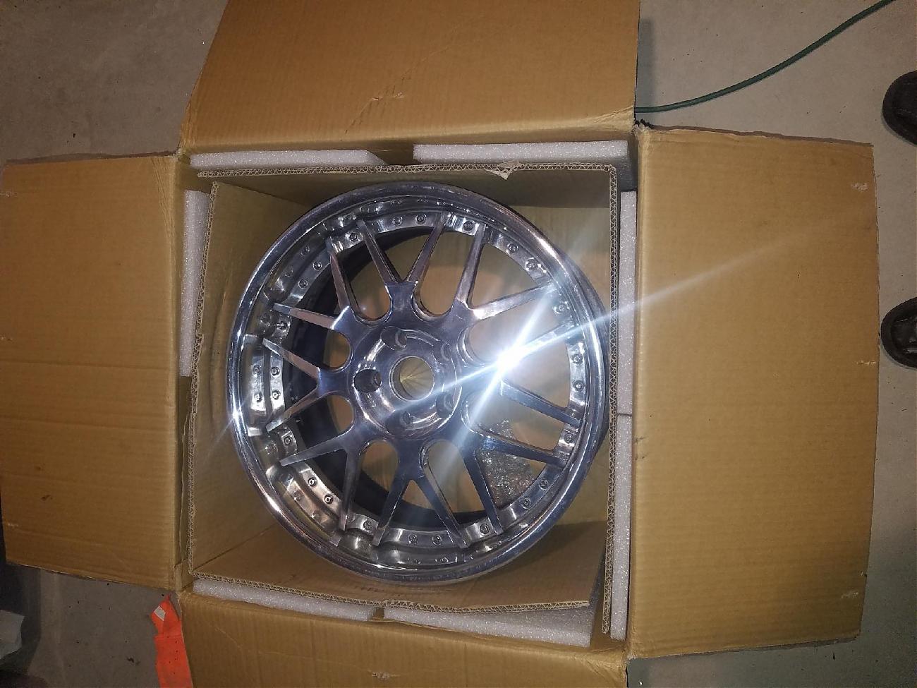 Description: I've got a used set of HRE 790R wheels that I was going to use on a build that has since changed direction. They are 19-F, 20-R wheels and they came off of a Z06 Vette and they'll fit Grand Sports too. They'll fit other cars and clear your big brakes as well. They are fully polished, with no major marks or road rash and will polish up well. The inner hoops are powdercoated black and have some peeling from over time, I presume...nothing too bad. Widths are 19x10-front and 20x12.5-rear. As you all know, 3-piece wheels offsets can be changed with the swapping of barrels in order to fit other vehicles. I was going to change out the barrels myself as well to fit another car, but decided otherwise. They are boxed and ready to go. Here's your chance to own a set of 3-piece wheels for less than half the price as we all know how expensive they are new. Wheels only, no tires.