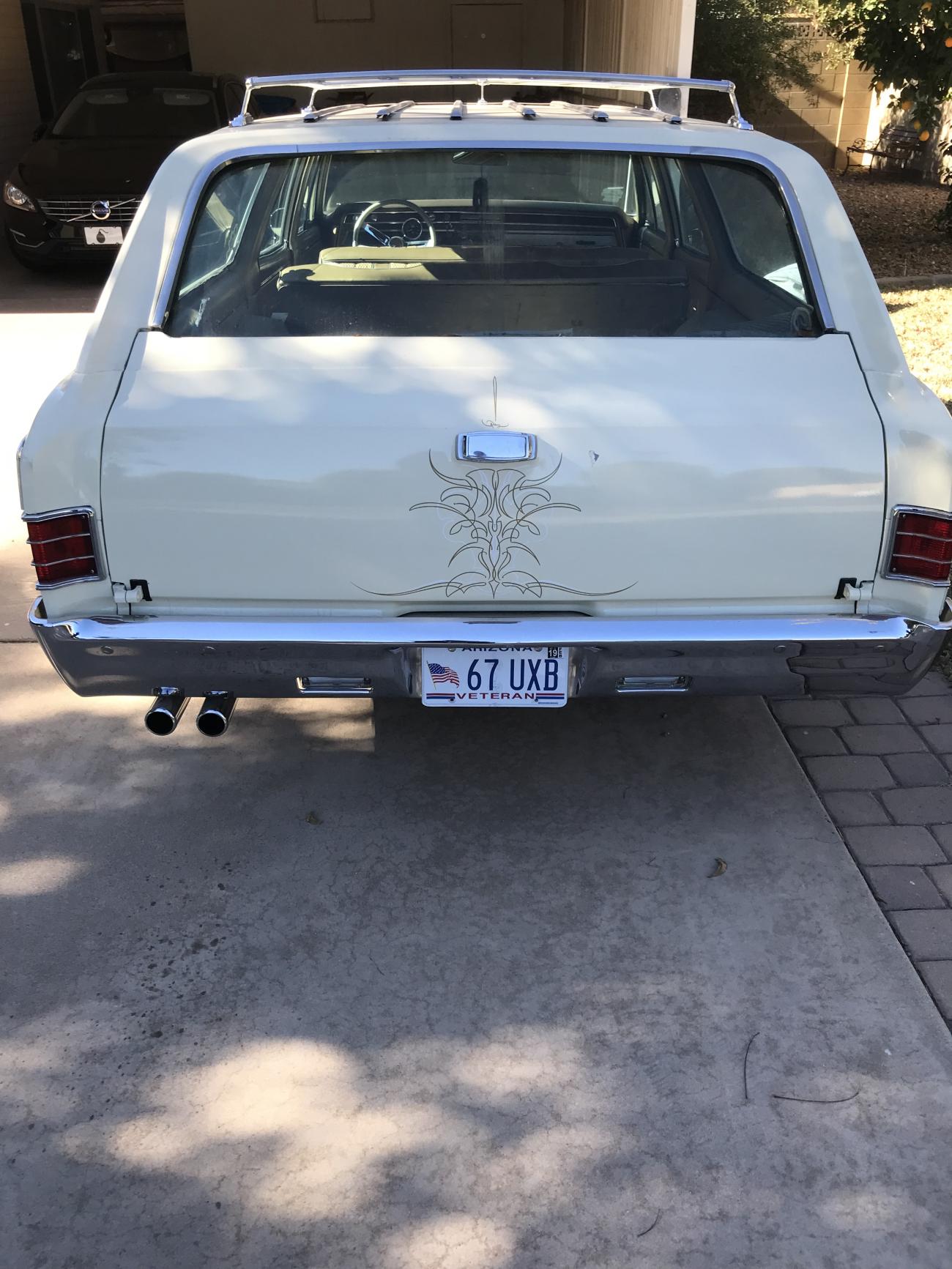 Description:For sale is a 1967 two owner station wagon. Owners manual and protect-o-plate still with the car. It has a 1970 350, 2 bolt main motor from a corvette. It was recently machined and rebuilt by Basko Machine. It has a new rear end gear setup with 3:36 gears and has a Richmond super T10 four speed transmission. It has 2" drop spindles and Cragar SS mag wheels. It was originally an A/C car, but the heater core and evaporator where removed in preparation for a Vintage air unit. (hasn't happened) Power steering and power brakes. The paint is fresh and in good condition. The interior is not complete, but the seats have been recovered with new factory correct fabrics by a custom upholstery shop. This car is a project in process, still needs some work, but it is a car with no rust anywhere. Please PM John to make an offer. This is a cool hotrod, custom, or with some additional help one bad restomod. Asking $16K. OBO