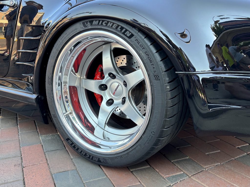 Now it’s home—and better than ever. David Schardt’s 1984 911 Turbo features a steel Slant Nose conversion by Bavarian Coachworks. It’s powered by a 700+HP turbocharged flat six built by Howe Motorsports mated to a G-50 5-speed manual transmission and rides on Bilstein shocks, Big Red Brembo brakes, 225/40ZR18 & 295/30ZR18 Michelin Pilot Sport 4S tires, and 18x8/18x10.5 Forgeline GF3 wheels finished with Satin Hyper Silver centers & Polished outers. See more at: