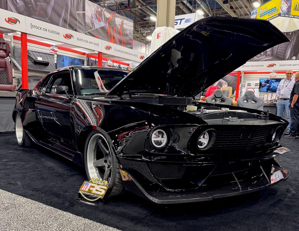 Still smoking. This is the world's first all-carbon bodied 1969 Ford Mustang, the incredible "Scorched" Mustang from Trick Rides, and it debuted in the TMI Products booth, at the 2025 SEMA Show. It's powered by a 520ci Kaase Racing Engines Boss 429 mated to a Tremec T56 Magnum six speed manual transmission and rides on a Roadster Shop Spec chassis, Fox coilovers, Baer brakes, Continental ExtremeContact Force tires, and 18x9.5/18x12 Forgeline forged three piece CF3C wheels finished with Graphite centers & Brushed/Cleared outers! See more at: https://www.forgeline.com/customer-g...-rides/cgk2953