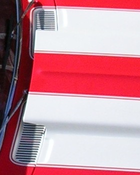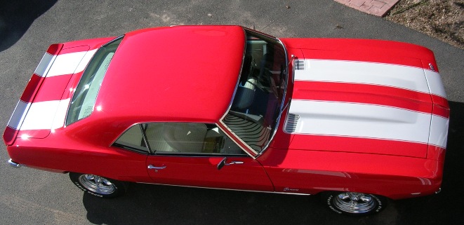 The stripes actually went down fairly easy free hand. I was mistaken abou the stripe being more narrow in the front. I swear I measured a 69 Camaro a few years ago when I ran stripes on a V8 S-10 and it was about an inch more narrow at the front. I used the AIM info and found the stripes are about 14" wide front and back.
