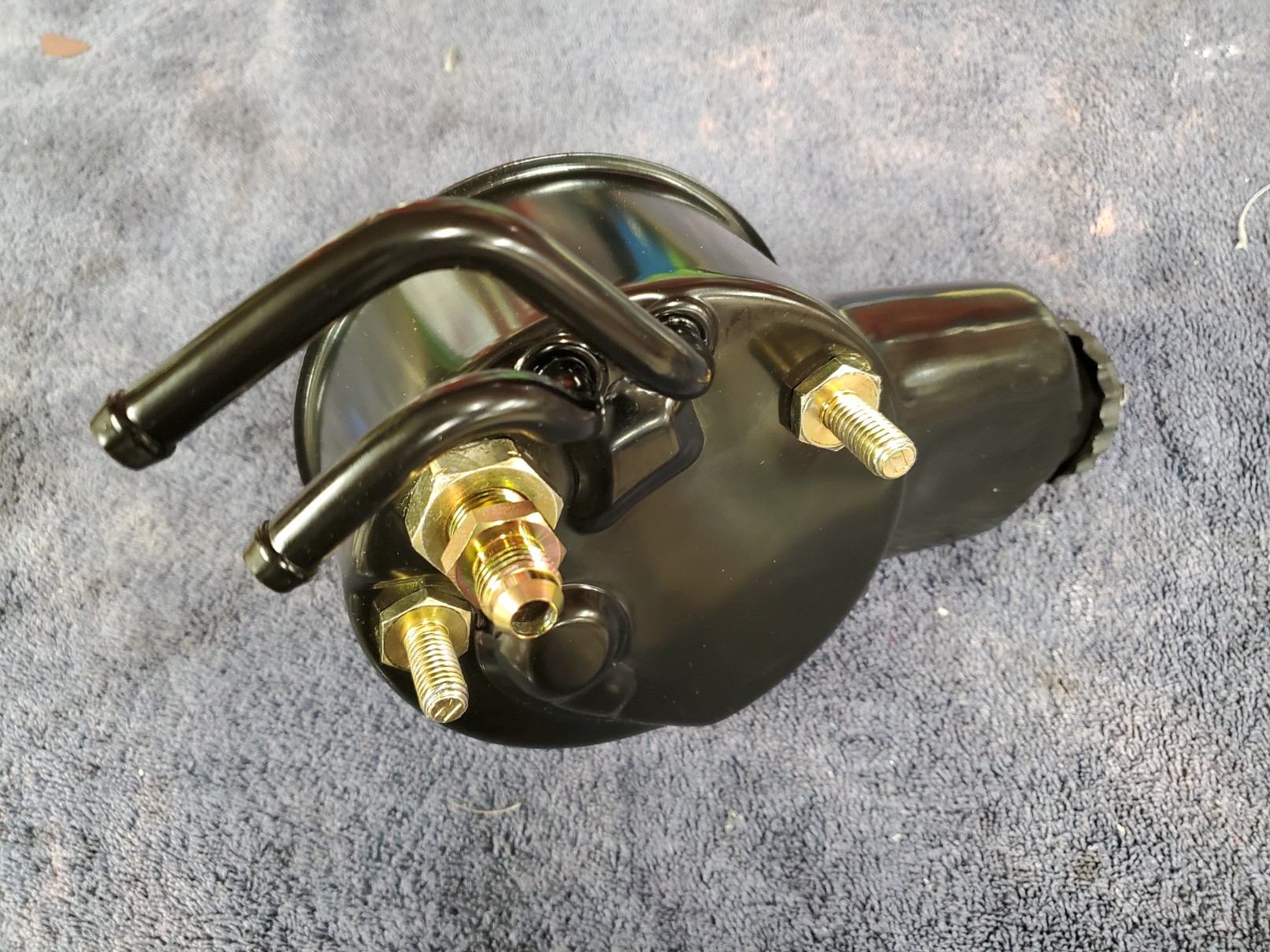 Next on the list was plumbing the system. CPP provided the braided teflon pressure lines and fittings as well as the return hose and clamps. The installation was very straightforward. We ended up running the lines over the top of the drivers fenderwell as he already had holes drilled and clamps for the previous lines. After bleeding the brakes we filled the pump and with the car not running we turned the wheel all the way to the right and left a few times to help prime the system. At this point the fluid level had dropped so we topped it off and fired the car. With the tires on the ground we let it idle for a minute or so and then topped off the fluid level again. The steering wheel was turned in both directions, and fluid level was checked and topped off as necessary. We pumped the brakes a few times to test the pedal, checked the fluid one last time, and then it was time for the first drive.