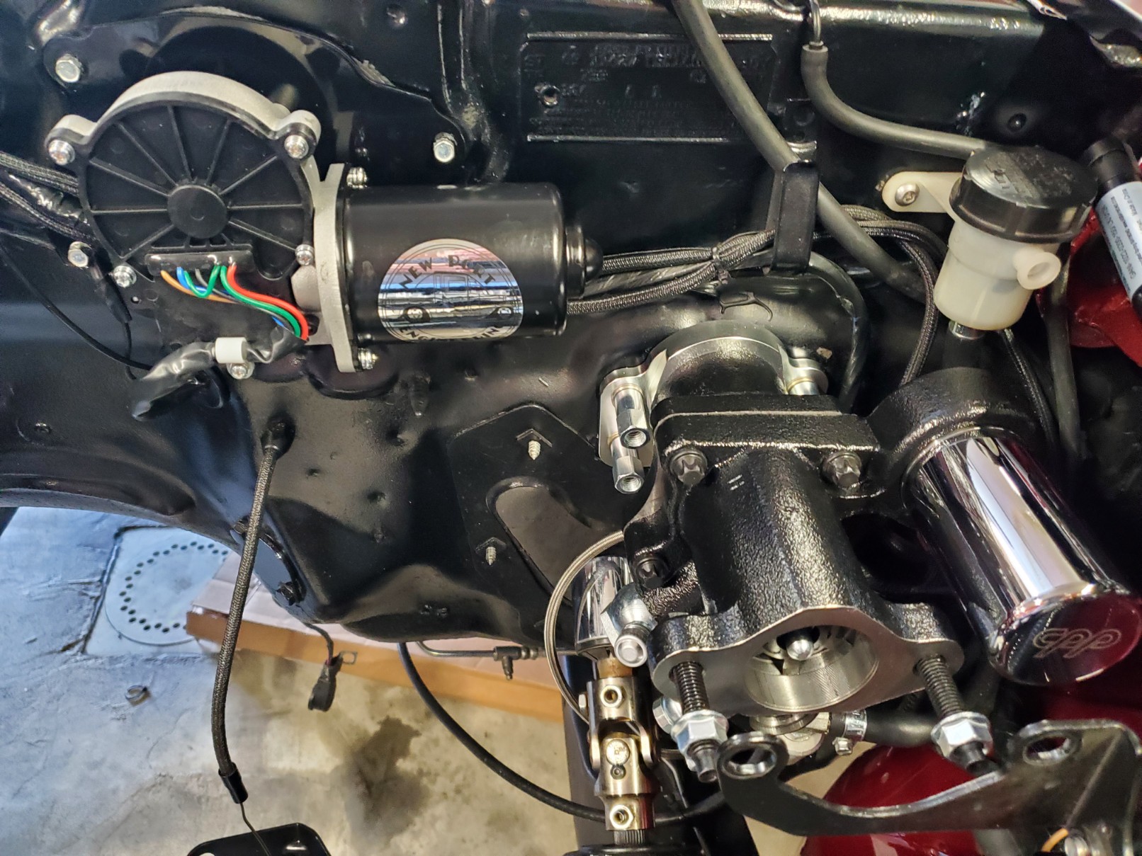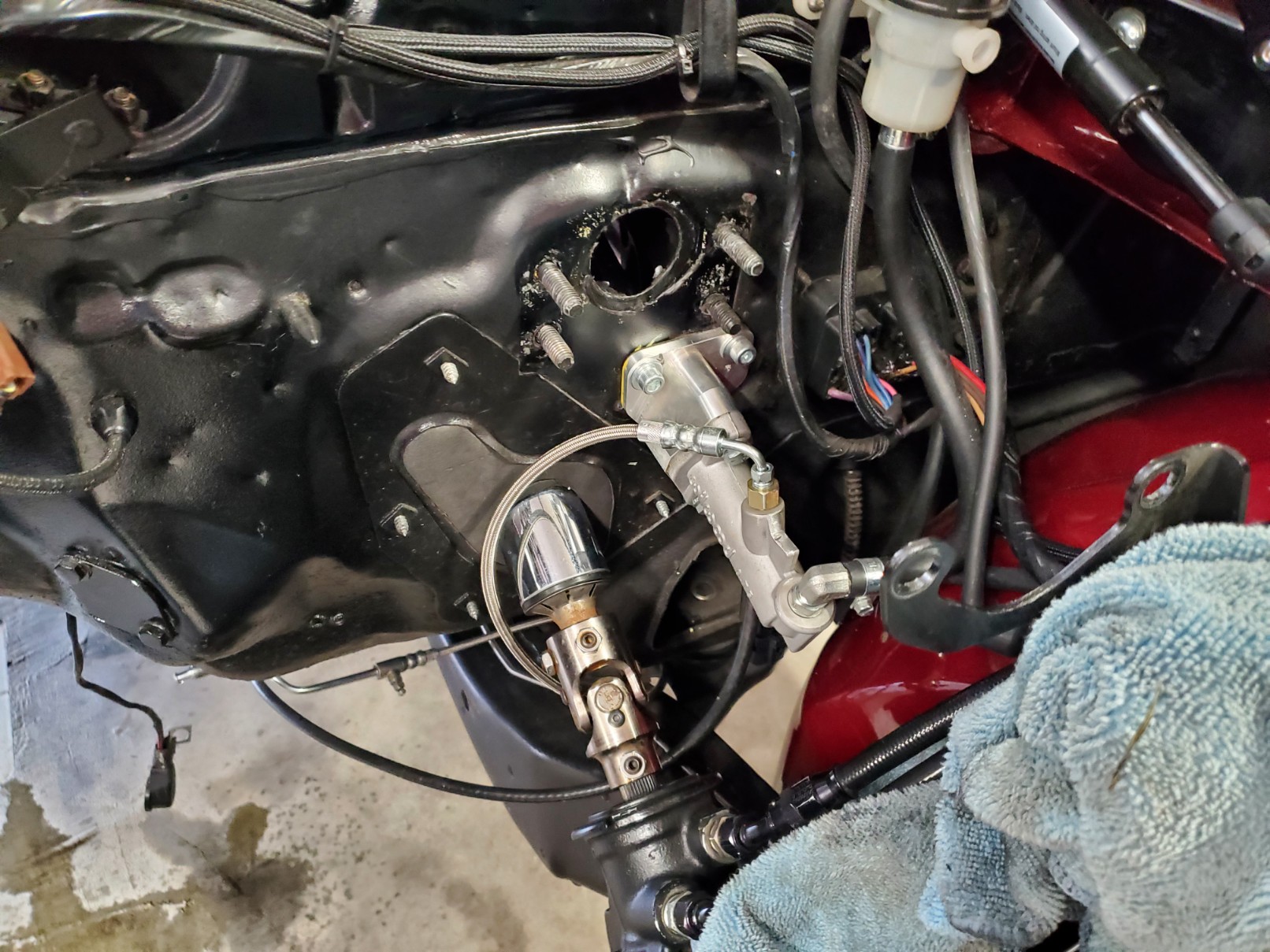 The engine had been removed by the owner for freshening, so this gave more room for the install. We started by removing the existing booster/master assembly. We noticed that the master was starting to leak into the booster, so a new Wilwood master cylinder was ordered.