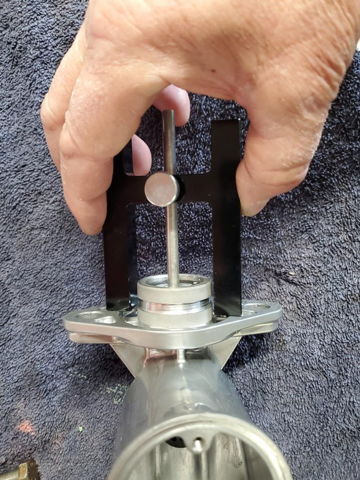 Next was the install of the master cylinder. We needed to verify the proper clearance between the hydrastop unit and the new master cylinder plunger. Our unit was set up for the short rod and the new master cylinder accomodates both short and long rods. We installed the supplied spacer for the short rod booster into the Wilwood master and used the measuring tool supplied by CPP.