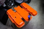 To start the installation, we took the valley plate and valve covers out of the package then primed and painted them orange to match the rest of the engine. Lokar does offer them in orange, but we weren’t sure what color we wanted to do when we ordered these up. Everything is included to make the swap happen minus the gaskets.