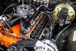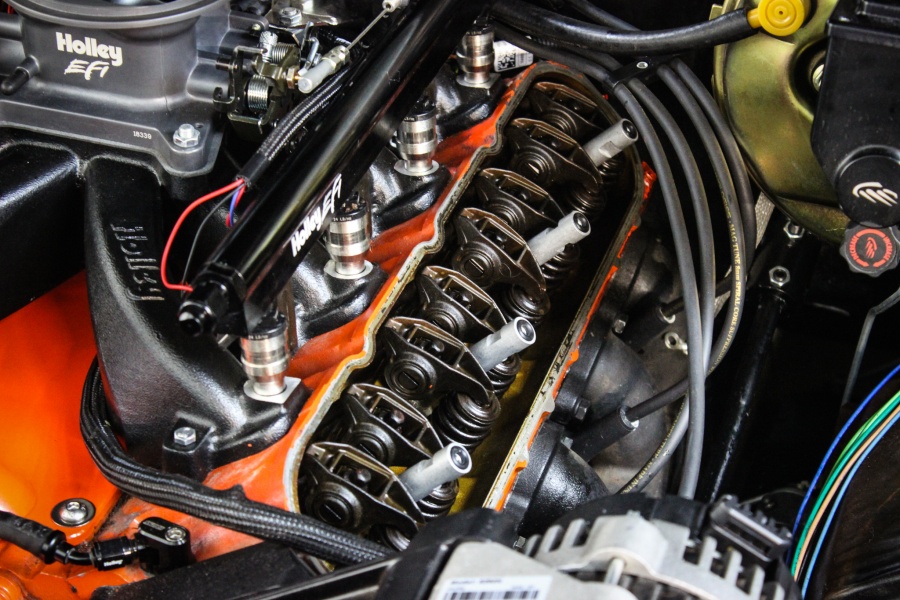 For starters we painted the entire engine the iconic Chevy orange. Then we used a Holley carb style intake and throttle body so we could run a traditional air cleaner. When we first did this we used a set of SBC valve covers and they looked great but we just couldn’t get past that it’s a SBC look. We used to run BBC’s and wanted it to look more like a BBC.