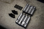 We took these spacers and screwed them into the heads where the factory valve cover bolts would normally thread. These spacers are machined to accept a wrench so snugging them down is easy.