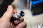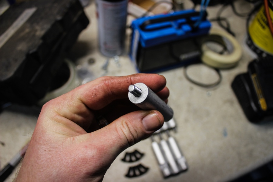 In order to install these new valve covers we have to install a set of spacers. These spacers are supplied by Lokar and pretty trick pieces. On one side they have a stud sticking out, then on the other side they are threaded. A supplied O-Ring pops into the threaded side in order to seal up the mounting bolts.