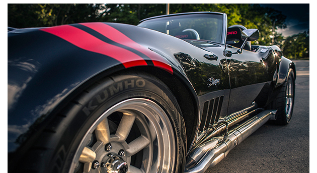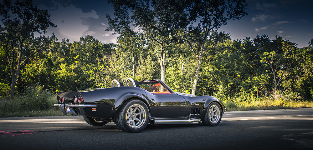 Chris had really forged the way with the Vortec 8100 swap into the Vette, even authoring a two part article in Corvette Enthusiast magazine using this car. After getting the car home and driving my neighbors nuts with my laps around the block in a car that was nowhere near street legal, the big block really grew on me. There is quite a bit of misinformation out there on the web about these engines. They have been completely revised from the previous generations even incorporating LS style cathedral port cylinder heads. The LS based engine control system with it's fuel injection, coil on plug, and drive by wire adds up to a fully modern big block that really makes this car what it is. It's backed by a Richmond 6 speed manual so torque is plentiful and everywhere not to mention the statement it makes when the hood is raised. I really like the old road racing Camaros and Cobras from the 60's so this car takes a bit from both. I picked the Vintage Wheel Works V48 wheels because they really modernized the original Mini-Lite design. I used a custom Cobra style roll bar, side pipes and vintage style L88 flares front and rear. The red interior helps give the car some "pop" with the red hash marks on the left front to bring the color out and keep with the vintage racing theme. For the modern aspect, the Vette Brakes and Performance suspension more than holds its own, Dakota Digital VHX gauges integrate all of the driver's information into two dials in seamless fashion, and the keyless locks and push button start really finish it off. I am very happy with how the car has turned out and look forward to my next project.