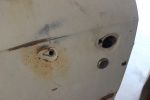 Before sliding our rebuilt wing window in place, we needed to replace the roller on the window mechanism. The metal stud was there but the plastic roller wheel was long gone. After drilling out the original, we installed a new roller wheel from OER then greased everything up for years of use.