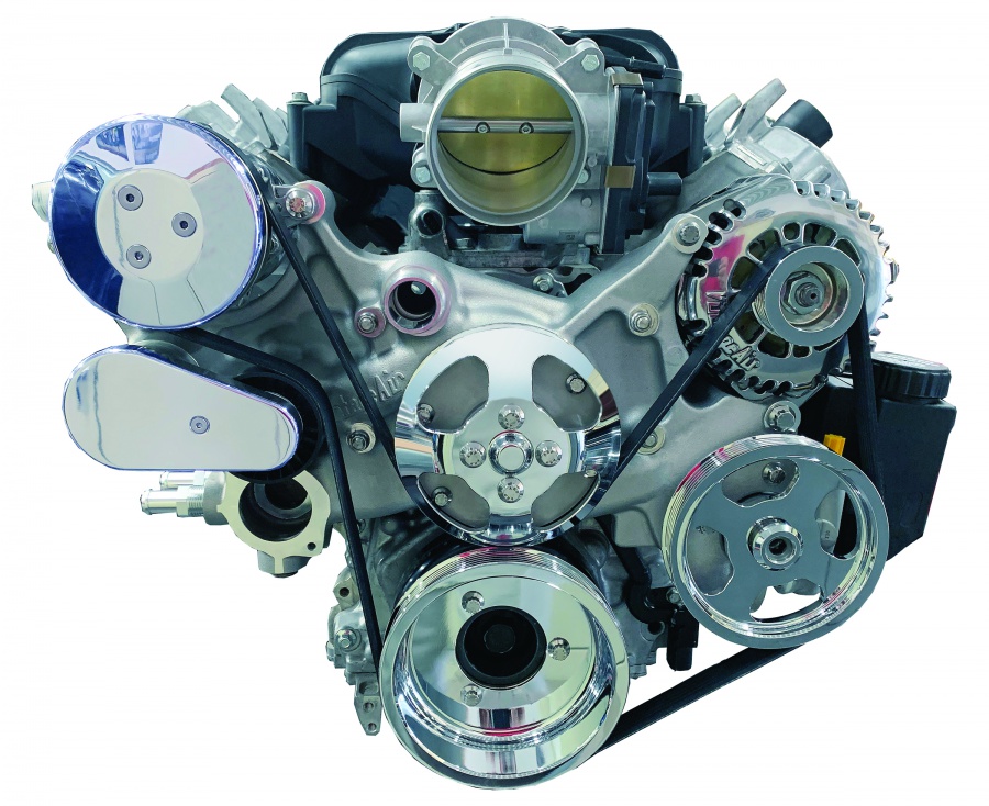 The Cast Front Runner for GM LT1 and LS engines provides a compact and rigid solution for front accessory drive mounting and is available in several finish combinations.