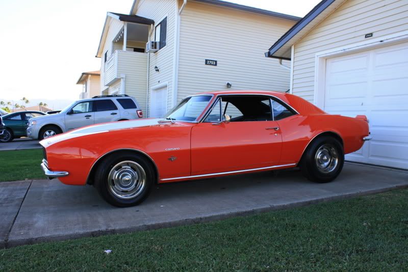 Well it looks as if my wife's "driver" 67 Camaro is going to be a minor project first. As it sits, it has stock suspension (except for stiffer rear leafs, and traction bars), a mild stroker, Tremec TKO, stock interior with working original AC, front disc brakes, and a 12 bolt rear end. The plan is to go with a Hotchkis suspension, a brake upgrade (not sure who I'm going with yet), 700R4, and a set of wheels (18x8 front, 18x10 rear). I like the ZE Mesh, but wow! That's definitely not a low budget wheel. I still have a ton of little things to fix too. The previous owner installed hideaway headlights but since it was originally a stock coupe, it doesn't have the turn signals in the front apron. I haven't decided if I'm going back to the stock grill or replacing the apron for one with turn signals. The gauges don't work. The power steering just went out (one of the hoses came loose and the header burned a hole in it) The TKO is in rough shape and the wife wants an auto. And it needs an interior refurbishing. I'm thinking of the 67 deluxe interior with 80's Camaro seats striped like the 67 deluxe. And that's pretty much it.