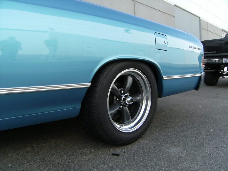 The first is a V45 set of 17s, that are 17x8s and 17x9.5s with a 255/50/17 front tire and a 275/50/17 rear tire on a 67 ElCamino. We spec'd the wheels and had VWW build them in their standard finish.
